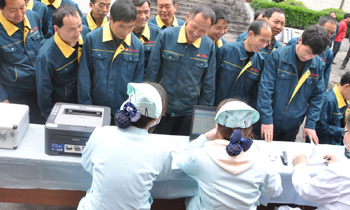9月20日,我矿人力资源部联系郑州大健康体检中心来矿对90余位新工人进行了岗前体检。(刘晓静)